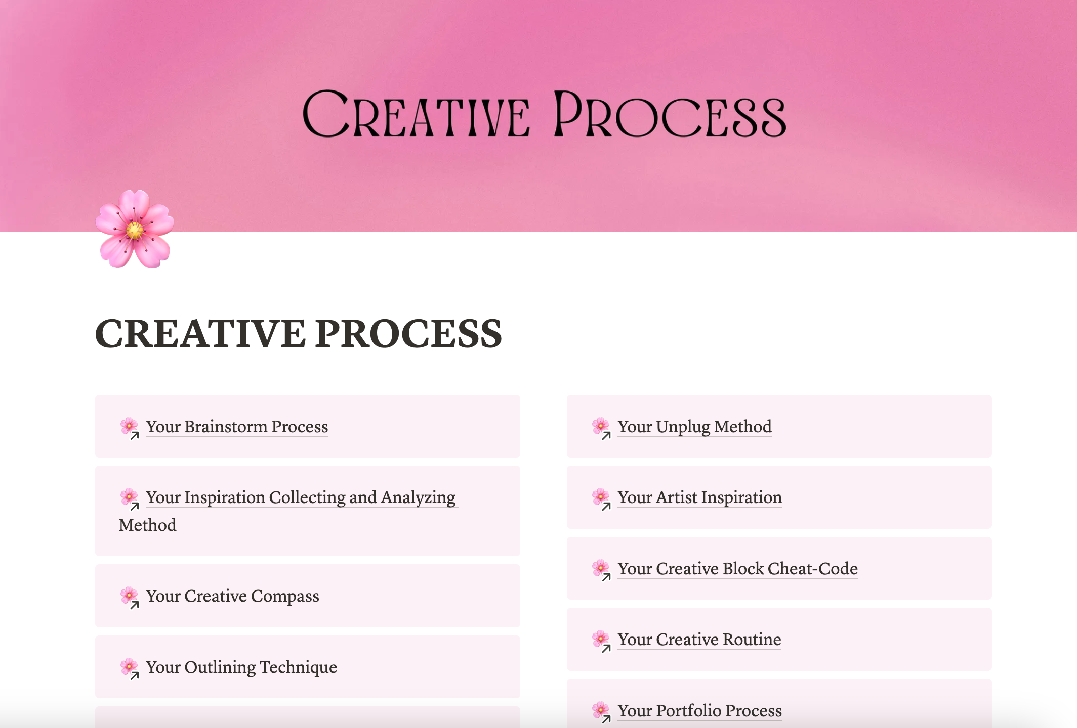 The Creative Planning Project (CPP) is a flexible and intuitive Notion template designed to help creatives organize ideas, plan projects, and develop their creative process without feeling restricted.