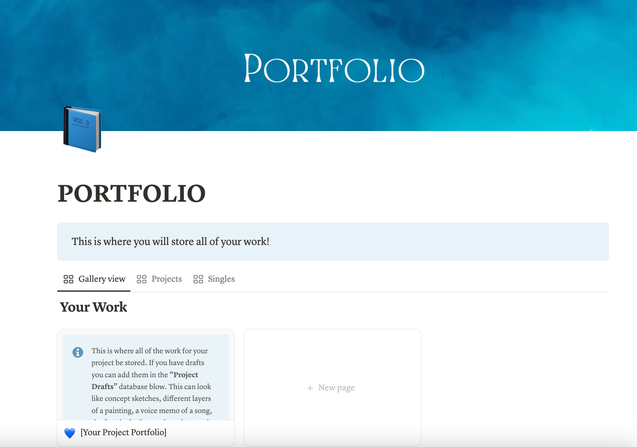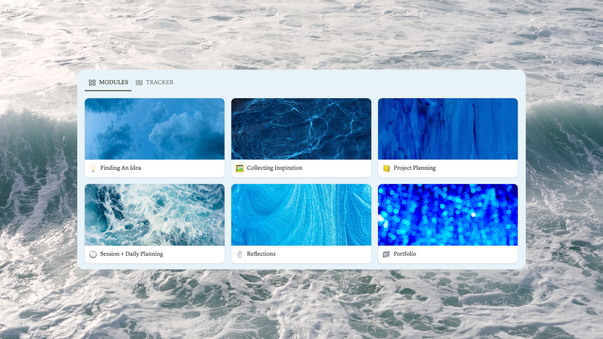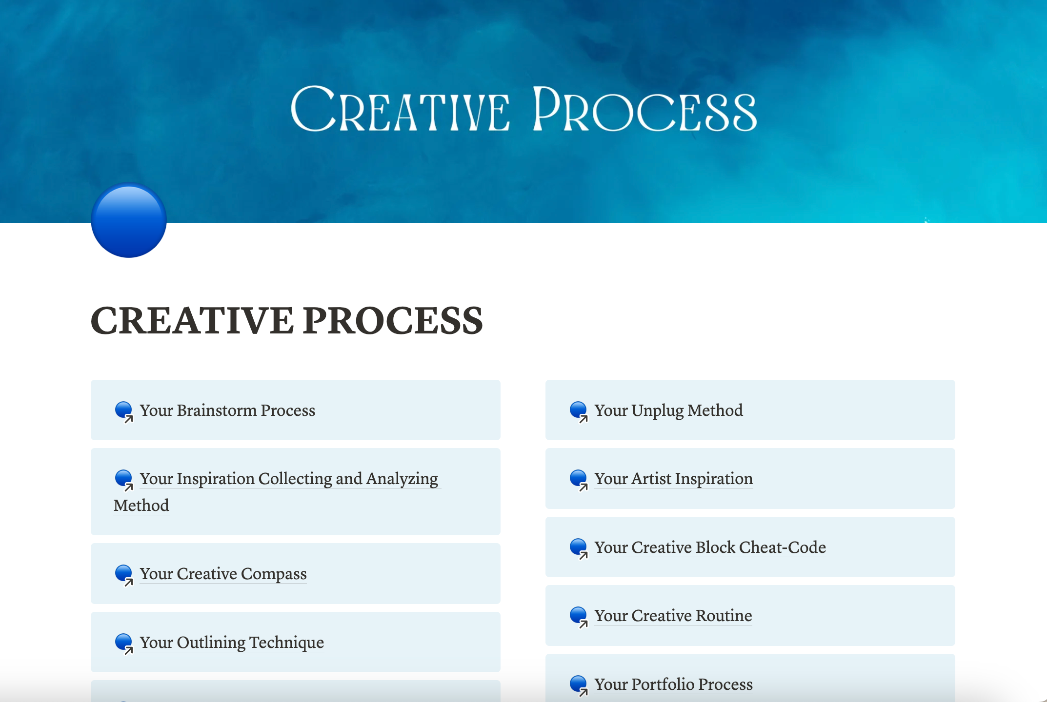 This is basically your road map to creation, where everything to do with your own creative process will live.